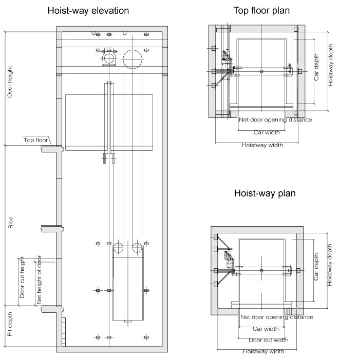 ► Machine roomless freight elevator construction sketch