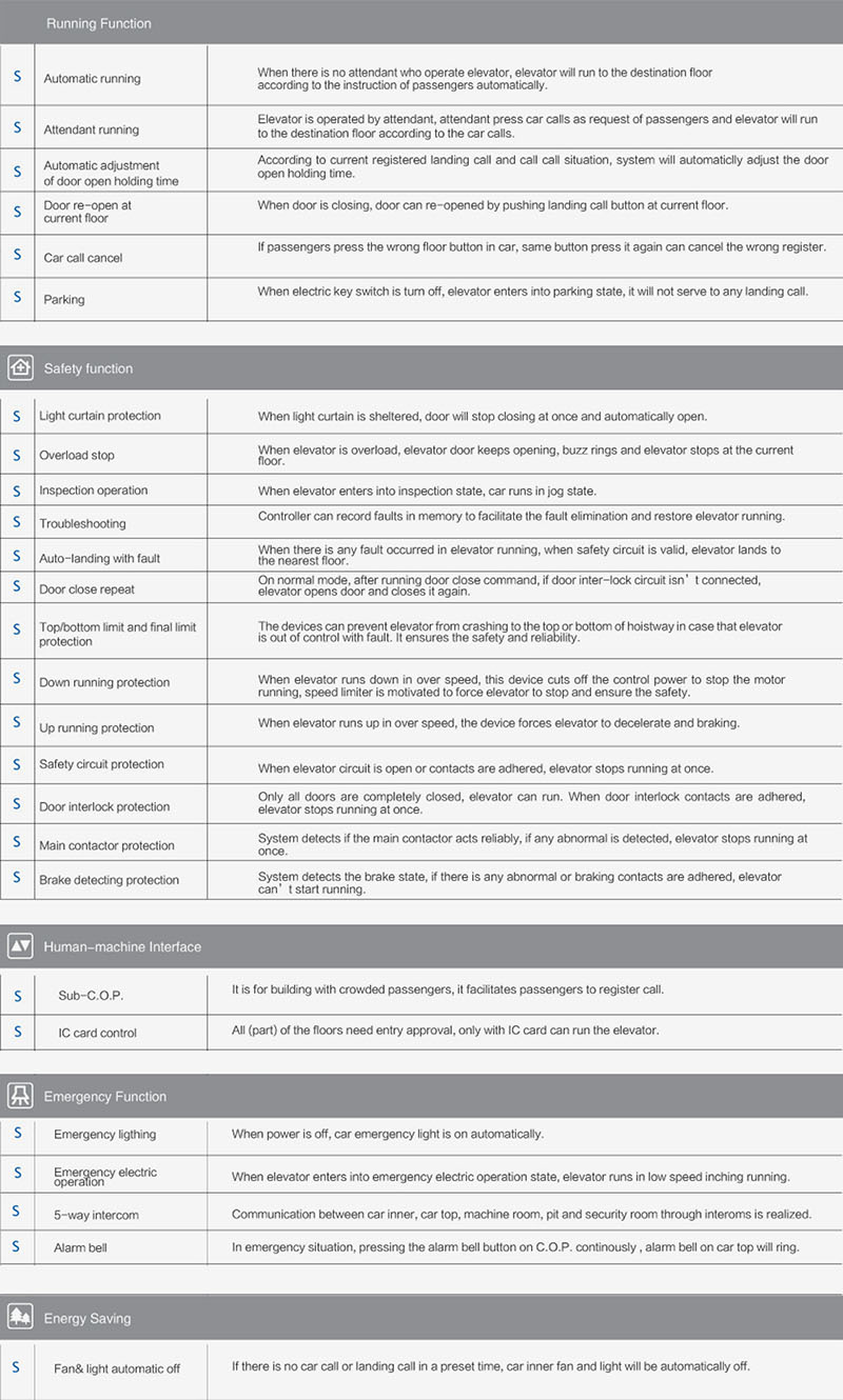 High strength plate bending and forming tech brings about the firm and durable car. Especially designed anti-collision guiderail (optional)provides the elevator car with multiple protections.