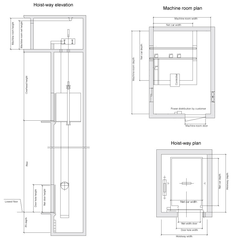 ► Hospital elevator construction sketch